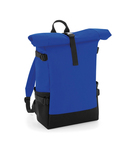600D polyester. Padded adjustable shoulder straps. Compression straps. Roll-top closure. Padded back panel. Padded laptop compartment. Internal valuables zip pocket. Easy access side pockets. Laptop compatible up to 17". Tear out label. Capacity 22 litres.